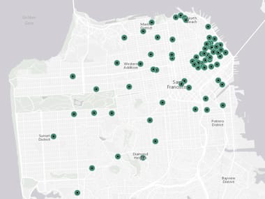 This simple web map is a mashup of the locations of a well-known coffee company’s San Francisco outlets.