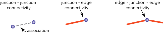 Junction-edge connectivity rules govern connectivity between point and line objects. These rules are predominantly used for spatial connectivity and so are used when creating snap rules. These rules also operate in both directions, that is if a rule exists that allows a specified junction to snap to a specified edge then the edge will also be allowed to snap to the junction.