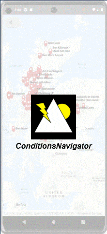 My aim was to create an application that worked on my Android phone which automatically retrieved forecast data from a weather API and guided us towards mountains where the weather was suitable for climbing. To achieve this, I created an application called the Conditions Navigator using the ArcGIS Maps SDK for Qt, which was deployed to my Android phone (Figure 4). The Qt Maps SDK is a great tool for efficiently creating cross-platform applications, so I could use the application on both my laptop and phone.