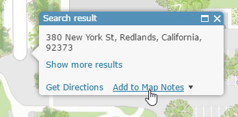 Step 2. From the Search result, click Add to Map Notes. You can add the location to a new map notes layer, or an existing one if already present in your map.
