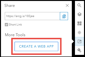 We have added the ability to create 3D apps directly from the scene viewer. When viewing a saved scene in the scene viewer, click the Share button and choose “Create a Web App”. From there, choose the desired configurable app and you will be taken to the configuration panel. This is similar to the workflow of creating 2D apps directly from the map viewer.