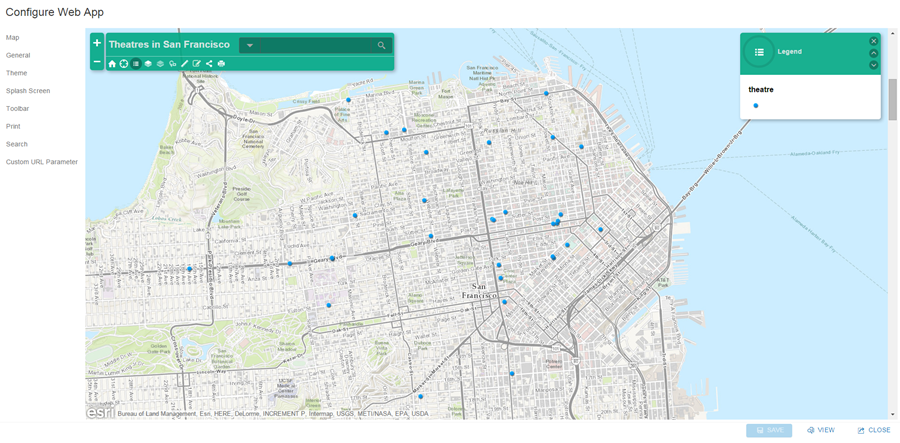 Using URL parameters allows you to modify the look, feel, and functionality of a web map inside of a configurable app without saving changes to the map or app. “center”, “level”, “extent”, and “marker” now support the use of projected coordinates, not just geographic. For example, you could choose to have an app open with the map centered on Europe by appending “center=500000,5500000,102100” to the end of the app’s URL. The first two values are the projected coordinates and the third value signifies the coordinate system: