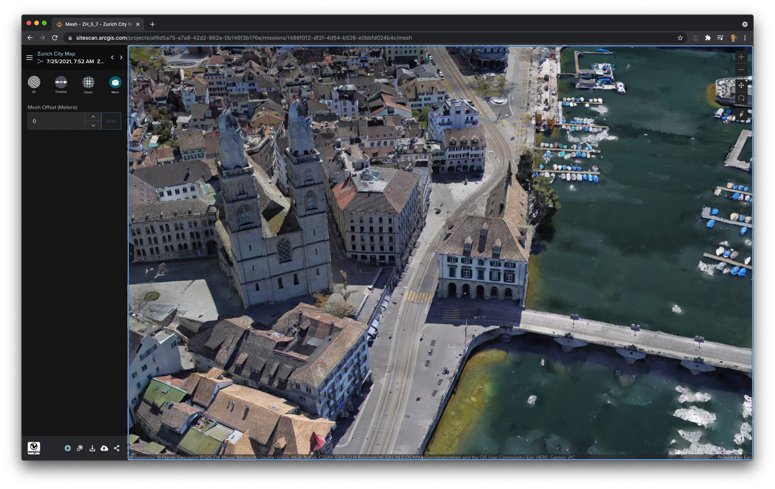 To test this, Esri and Esri business partner, Wingtra, began a proof of concept: use the WingtraOne Gen II to map a large section of Zurich, Switzerland, and process the data in Site Scan for ArcGIS using the newly integrated SURE meshing engine.