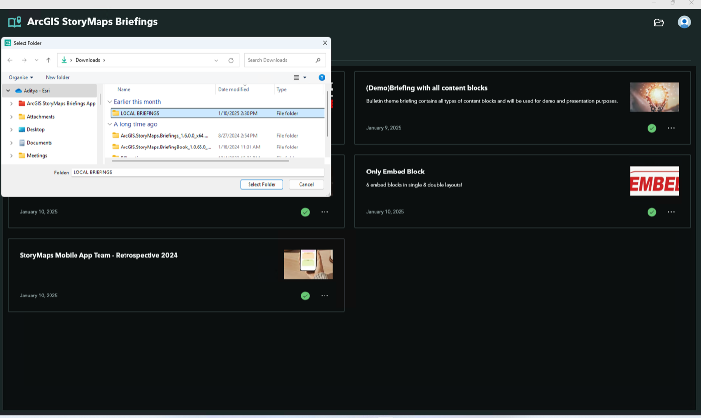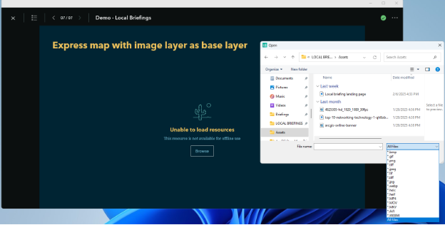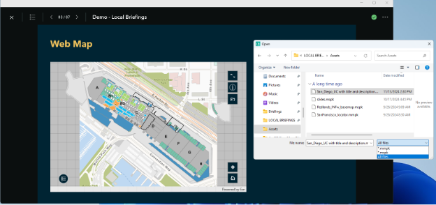 Local Briefing is an effective new functionality in ArcGIS StoryMaps Briefings App supported for Windows devices from ver. 1.8.4. With this update, local briefings can be edited but cannot be synced back and does not support live data updates after export. We’re continually improving briefing workflows—stay tuned for potential enhancements like additional export options.
