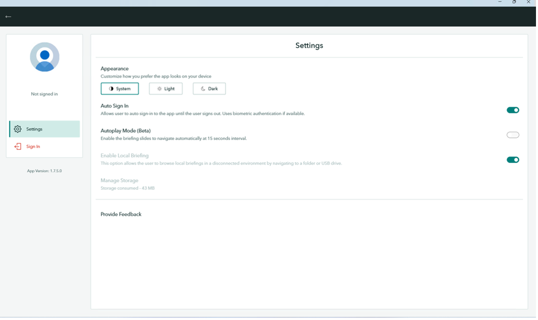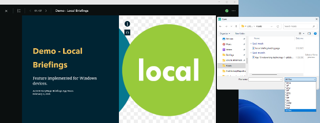 A local briefing refers to any offline briefing that is transferred (sideloaded) to your Windows device via a USB drive, local network or shared with you by your team through email. You can access, view and even update these briefings using the Briefings app in a disconnected environment.