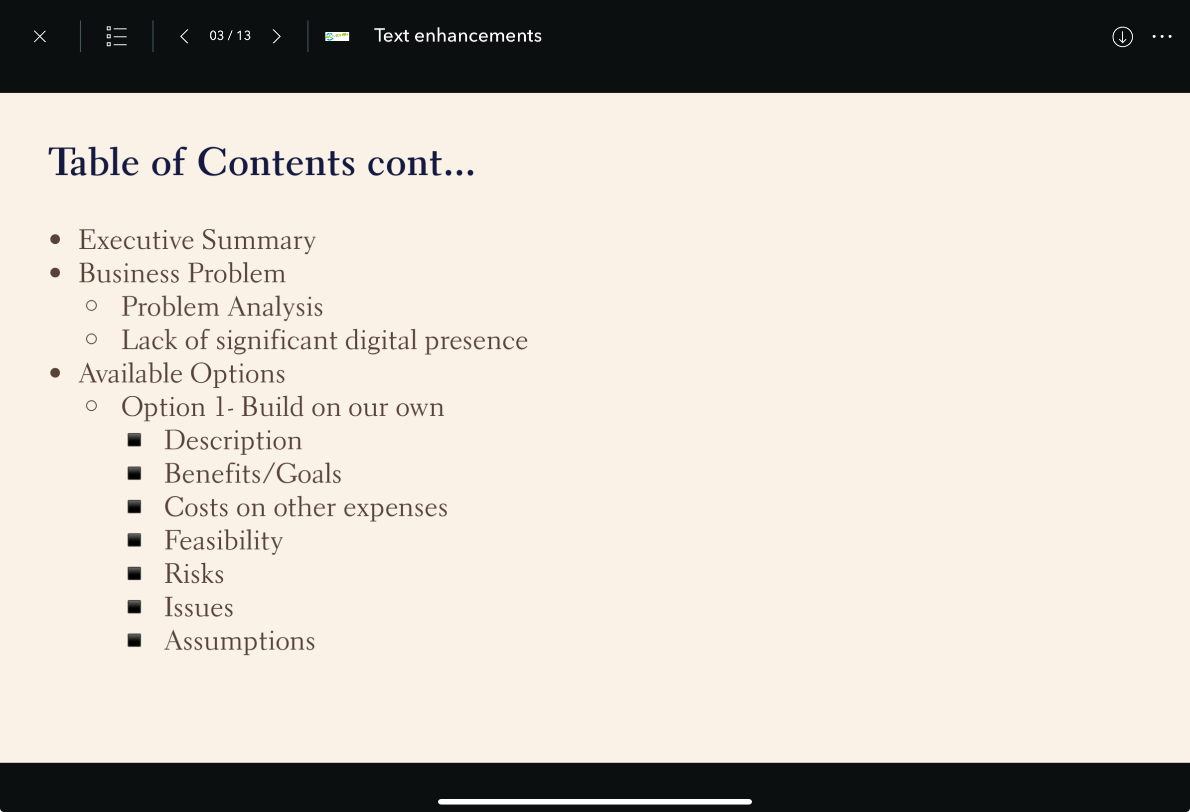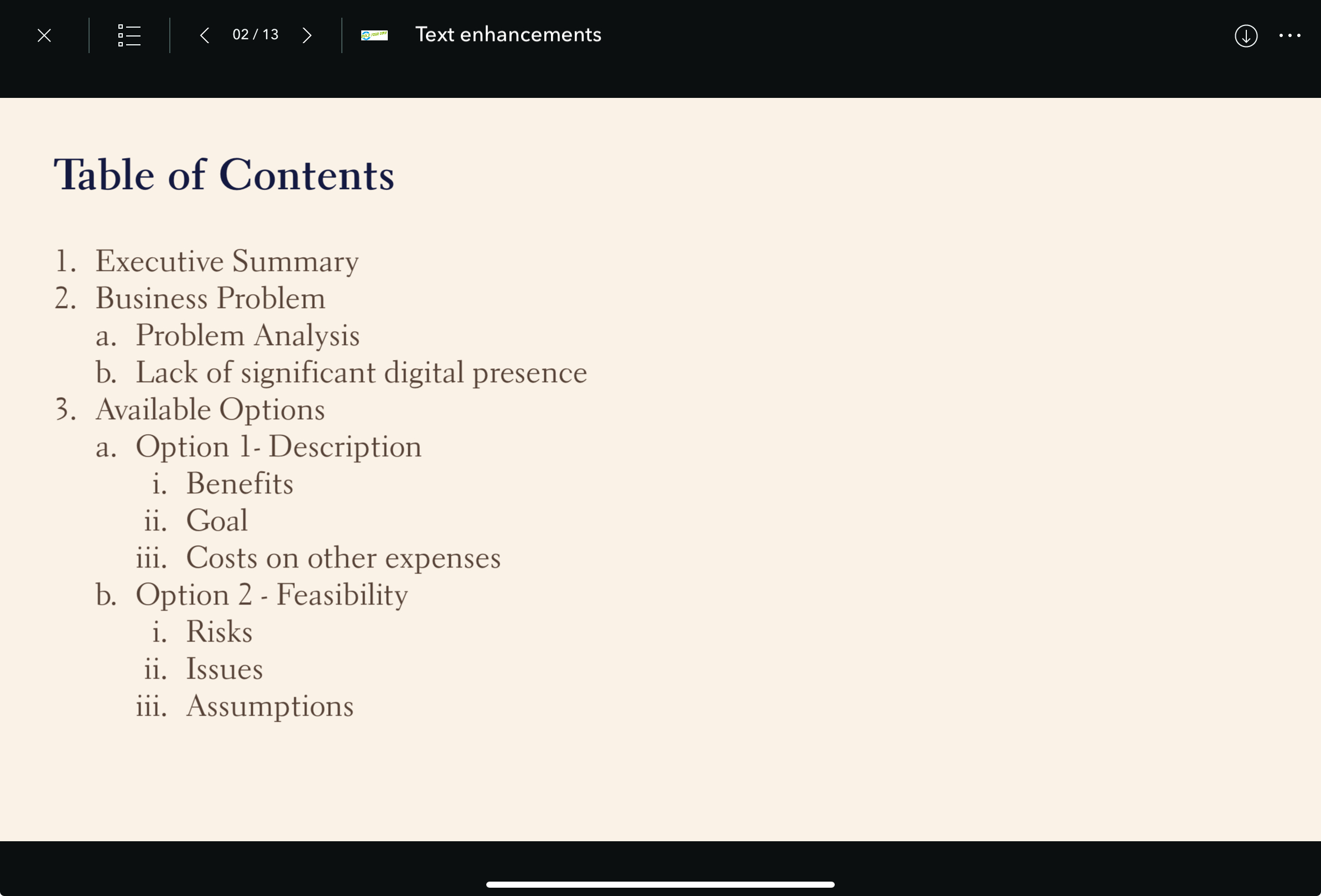 The Briefings app now supports third level of bullet and numbered lists in the text block created in the Briefings web builder. This will help to make information easier to read, understand and scan into concise points, highlighting key information and organizing complex data effectively.