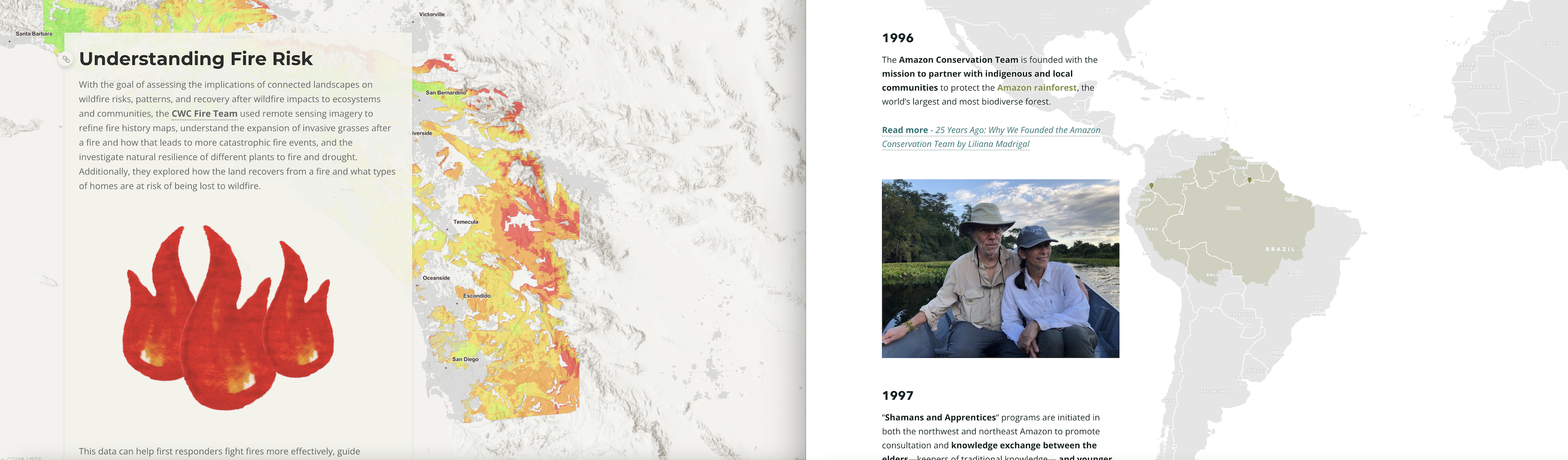 Follow along with the Amazon Conservation Team as they celebrate 25 Years of Biocultural Conservation, where an elegant and simple map of their journey through the years becomes the story’s focal point. The group uses map choreography to guide visitors through all 25 years of their mission.