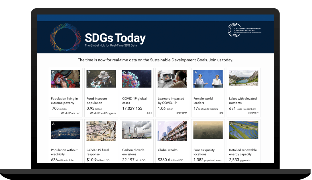 To help harness the vast treasure-trove of geographically referenced SDG-relevant daily data, SDSN, in partnership with Esri, launched SDGs Today: The Global Hub for Real-Time SDG Data. SDGs Today not only features real-time and timely geospatial data for the SDGs, but also houses educational and training resources to empower this generation and the next with the GIS skills and resources to be leaders in sustainable development.