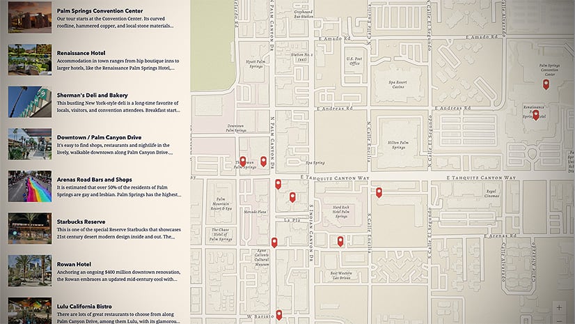 Now, as cool as that is, it’s important to use discerning judgment when deciding whether to press that 3D button or not. Not every tour (nor every basemap) is suited for the 3D effect. Tours with points that are very far apart can be fun for the sweeping transition from point to point. At the other end of the spectrum, a hyper-localized tour can work nicely, too—if there’s sufficient terrain in the environment. Check out this story for a more thorough discussion of which situations work best for 3D cartography.
