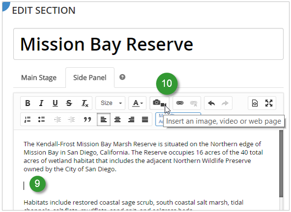 In the examples shown below a presentation has been added to the Main Stage (top) and Side Panel (bottom).