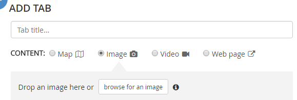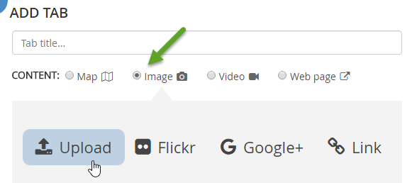 Anywhere you can add images, you’ll be able to upload local files. For example, when you add a Tab, choose Image and then click Upload.
