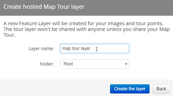 You will be prompted to specify a feature layer name. Enter the Layer name, then click Create the layer: