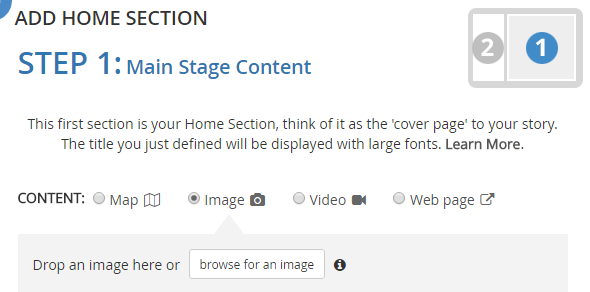 Once your story map has been saved, you will be able to add locally stored photos.