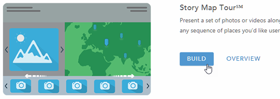One way to launch the Map Tour builder is to click the Apps tab at the top of the page, scroll down to find Story Map Tour, then click Build.