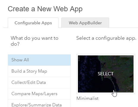 You can fully configure the app and save it, then add it to the main stage using its URL. But one of the conveniences of using Minimalist is that you can add it using Preview, since the default configuration includes all you need. See Quickly share your map using an app for more details.