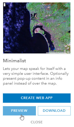 Step 4. Click Preview, and the map will open in the default Minimalist configuration in a new browser or tab. Copy the preview URL from your browser.