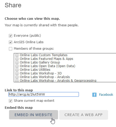 Step 1. Share the map publicly to enable and click Embed In Website.