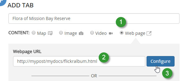 Flickr is a very popular photo sharing site with many millions of users. One of its features is an album, letting you organize photos by category or theme. Album contents can be viewed using auto-slideshow mode, or click-to-advance. Follow these steps to add Flickr albums to your Story Maps.