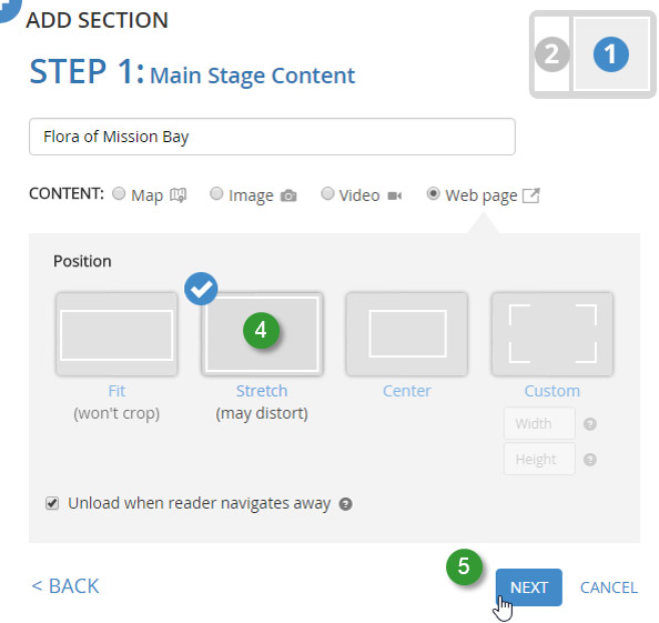 1. Add a new section and click Web page.