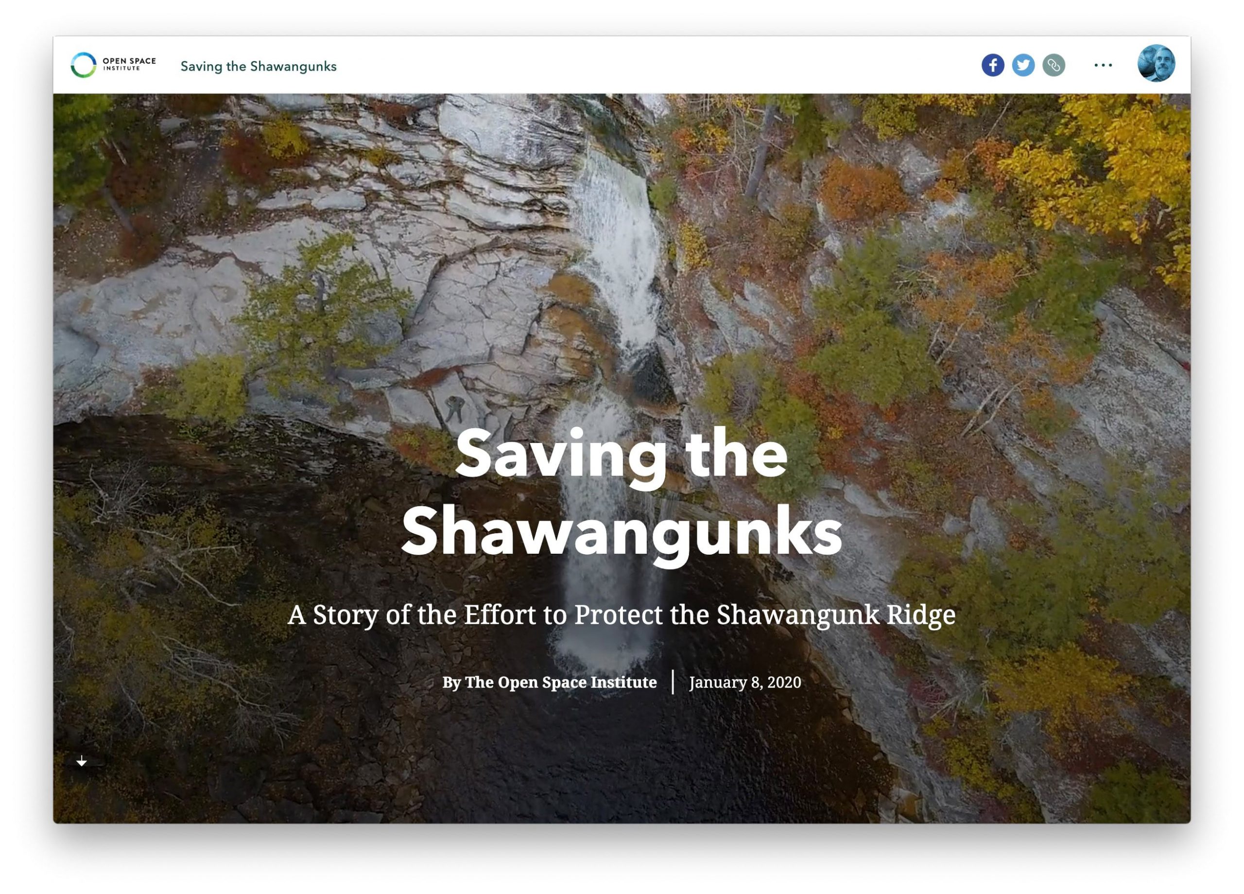 Preservation is also the topic of this elegant story map by the Open Space Institute. The story describes the Shawangunk Ridge as a “47-mile long wonderland of windswept cliffs, rock talus fields, and secluded ravines in southeastern New York.” A distinctive characteristic of the region is a long line of white cliffs, remnants of a shallow seafloor that was thrust upward as continents collided some 375 million years ago. Photos and videos depict the ridge’s natural treasures, and a series of maps documents the Institute’s land protection efforts over nearly a half-century.
