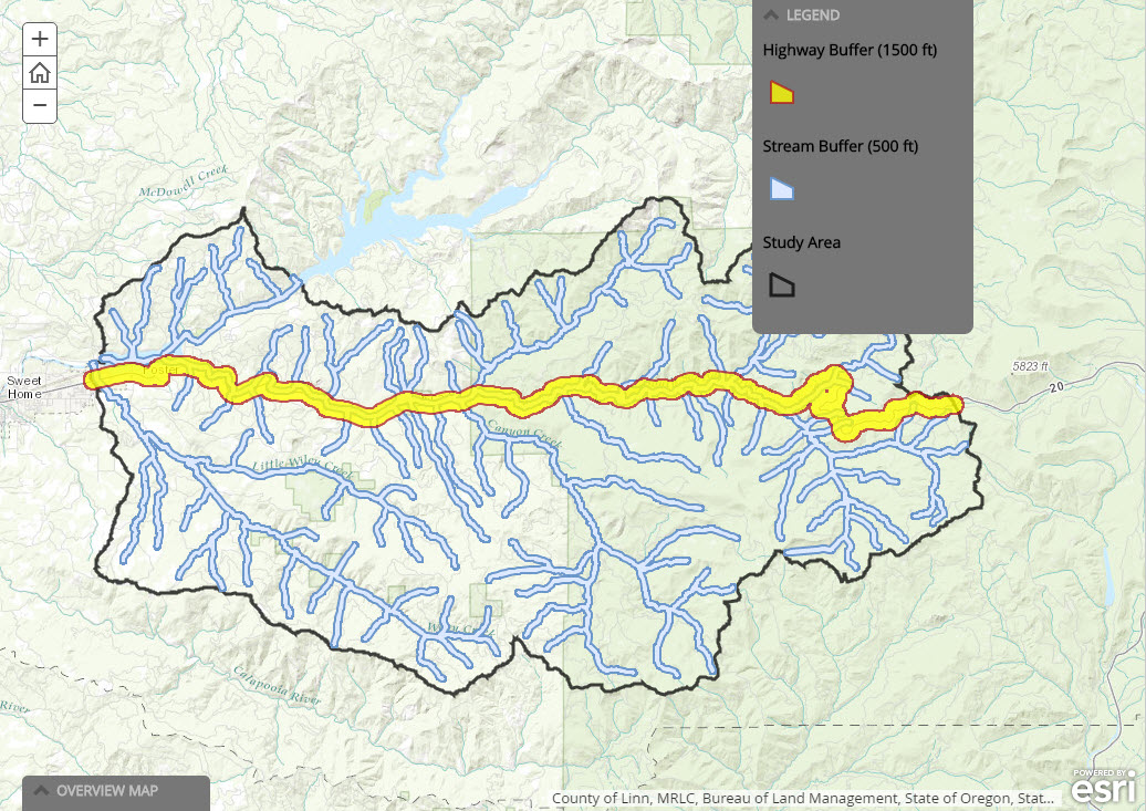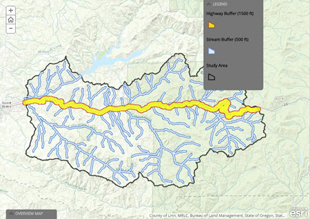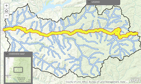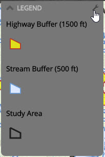 The map displayed on the Main Stage of your Story Map Journal will now open with the Legend visible, and the Overview Map minimized.