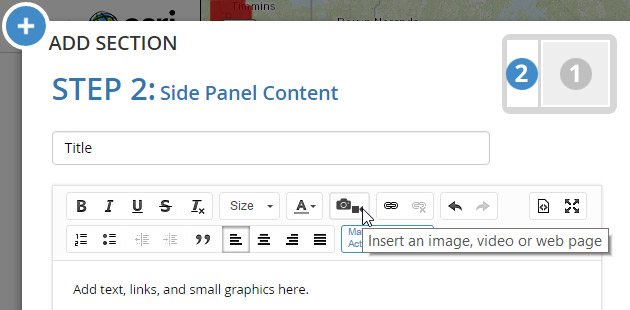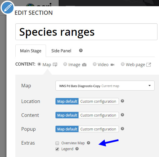 Story Map Journal is a very popular story map app, and is especially useful when you have lots of maps, text, and media. The Map Journal builder is used for authoring, enabling you to add maps, media, and text via Sections, each composed of a Main Stage and a Side Panel. When adding a map to the Map Journal main stage, you can choose whether to include an overview map and legend.