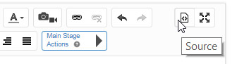The Source button opens an HTML editor so you can view and edit existing markup, or add unique elements or override existing styles.
