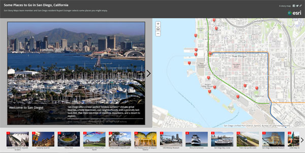 Some Places to Go in San Diego is one example, and you will find more in the Story Map Tour gallery. To learn more, see the Story Map Tour overview and tutorial.