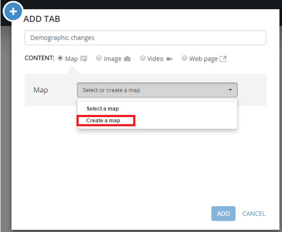 To create a new web map, click Create a map in the Map dropdown: