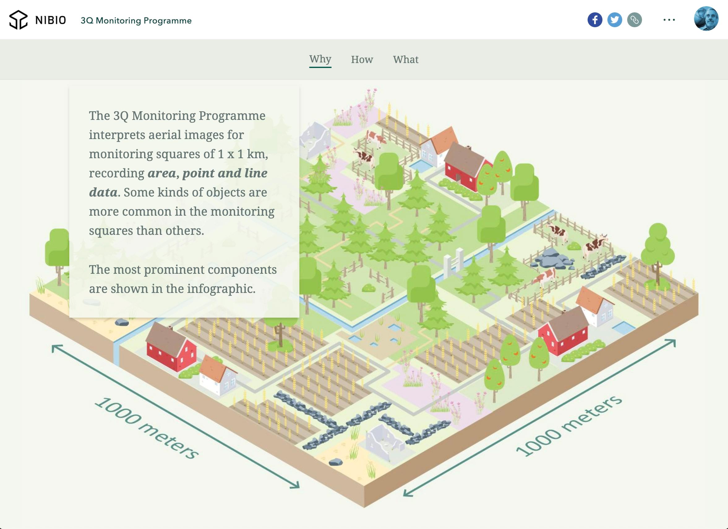 Near the top of the 3Q Monitoring Programme story by NIBIO, a Norwegian research institute, is a floating panel sidecar that uses schematic artwork to turn what could have been a dry discussion of land cover categories into a charming sequence. Check out the rest of the story for its imaginative use of infographics, maps, and annotated photographs. It’s a tour-de-force.
