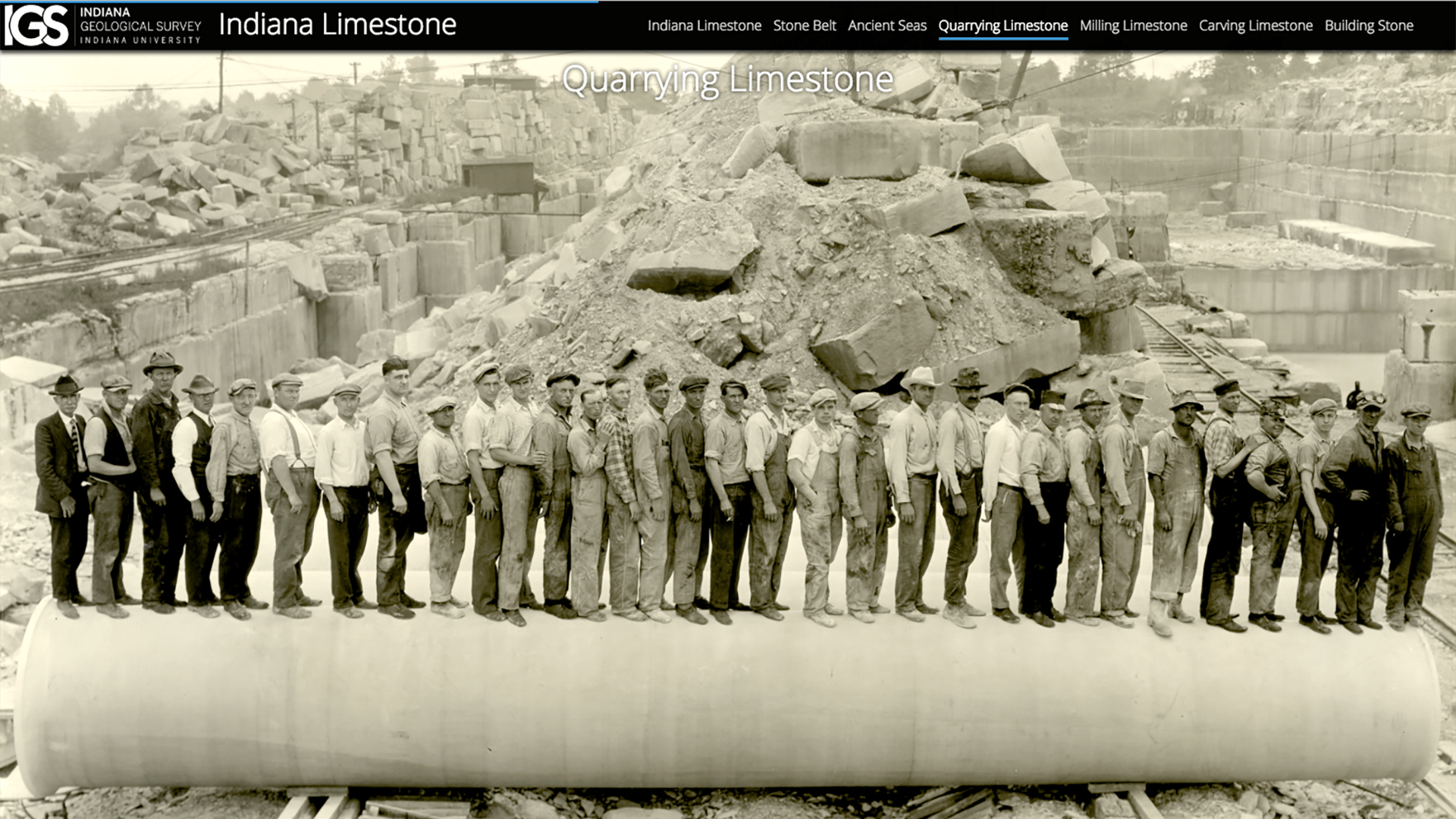 - “Indiana Limestone”, by the Indiana Geological Survey, explores the cultural and historical dimensions of the extensive deposits of the creamy, buff-colored limestone that underlie much of south-central Indiana. The story maps the deposits and portrays the quarry workers and stone carvers who have worked the stone for almost 200 years.