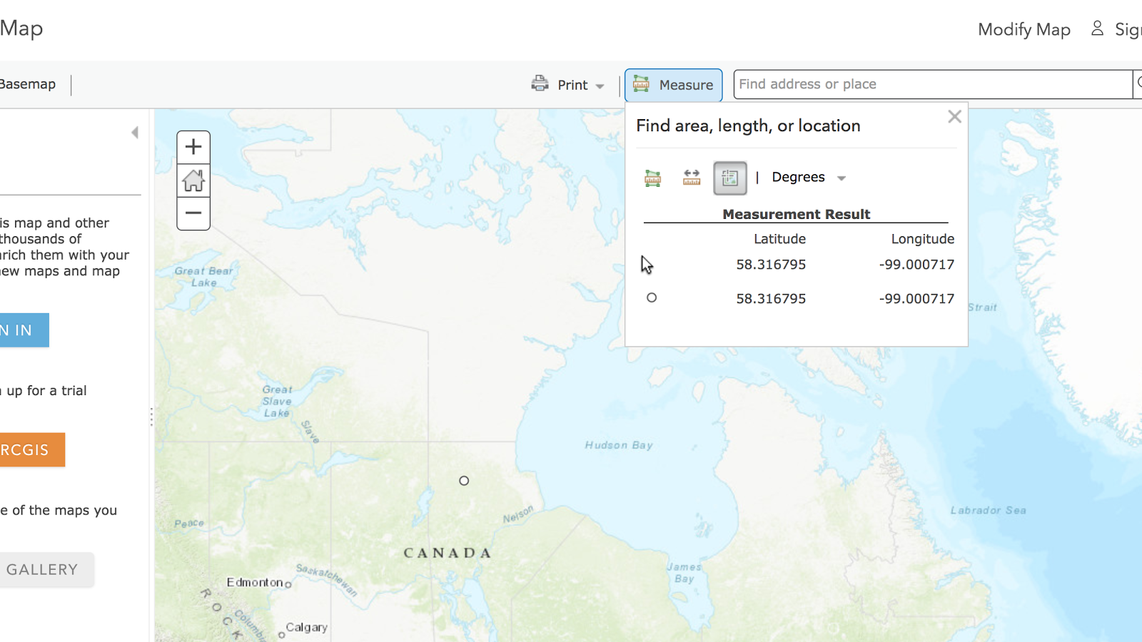On a computer, open up a blank web map in ArcGIS Online in one window and a spreadsheet (I used Excel) in another window. On the webmap, have your interviewee locate points on the map that corresponded to segments of their oral history. The easiest way to do this is by clicking on the “Measure” tool on the top of the page, clicking on the third icon from the drop-down menu, and then clicking points on the map. This tool will generate the lat/long coordinate for each point your interviewee finds. Each point the interviewee selects on the map, copy the lat/long in the Excel document.