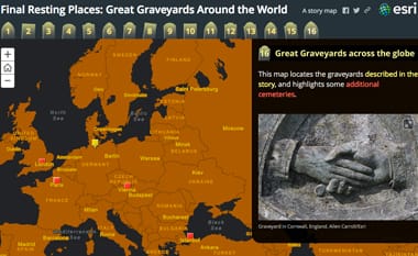 In spite of their literally morbid function, graveyards and cemeteries are among some of the most fascinating locations on the planet, as playfully featured in this Halloween-themed story map.
