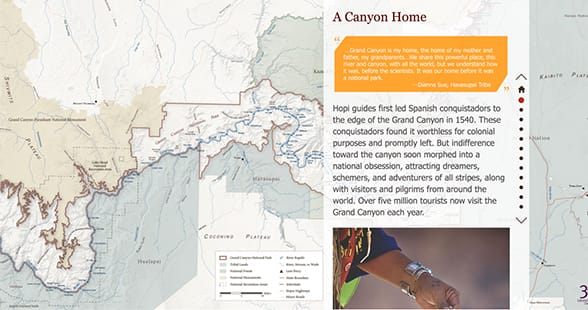 The Story Map Cascade app combines narrative text with maps, images, and other content in an engaging, full-screen scrolling experience. In a Cascade, sections containing text and in-line media can be mixed with “immersive” sections that fill the screen with maps and graphics.