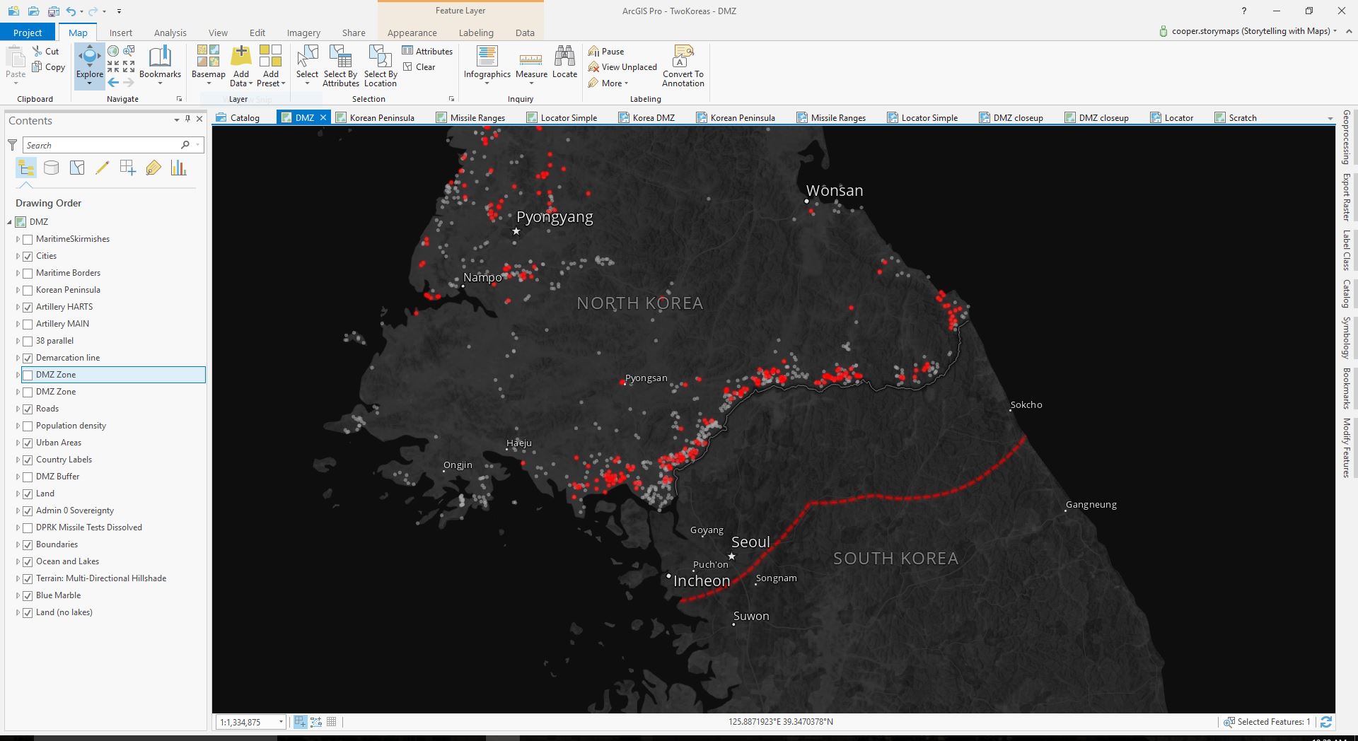 This story map was a highly collaborative effort, with all members of the content team pitching contributing to its production: Allen Carroll pitched the idea and created most of the comparison graphics, Cooper Thomas and David Asbury tackled the cartography, Greyson Harris conducted historical research and designed the political timeline, and Hannah Wilber created the missile test graphic and drafted much of the text.