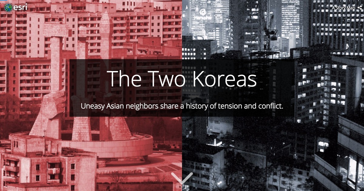 The Story Maps team was keen to address this gap in coverage, and so last week, we published “The Two Koreas,” a graphics-heavy piece that attempts to peer beyond the headlines to expose the ever-widening political, economic, and cultural gulfs separating North and South Korea.