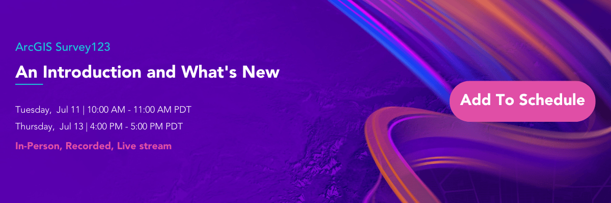 Visit the Survey123 website to learn more about the product and the Survey123 Esri Community to get answers to any questions and share your feedback. Additionally, if you haven’t already, check out what’s new in the June release of Survey123.