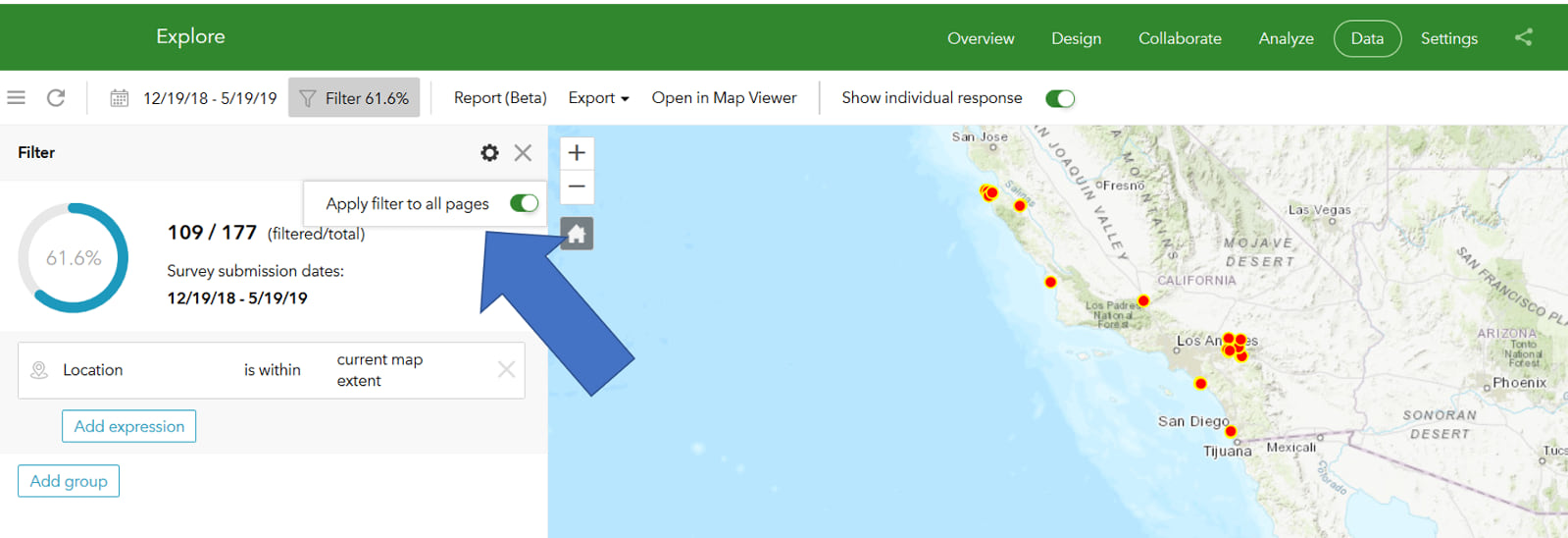 - An option to optionally propagate selection filters between the Data and Analyze pages has been added.