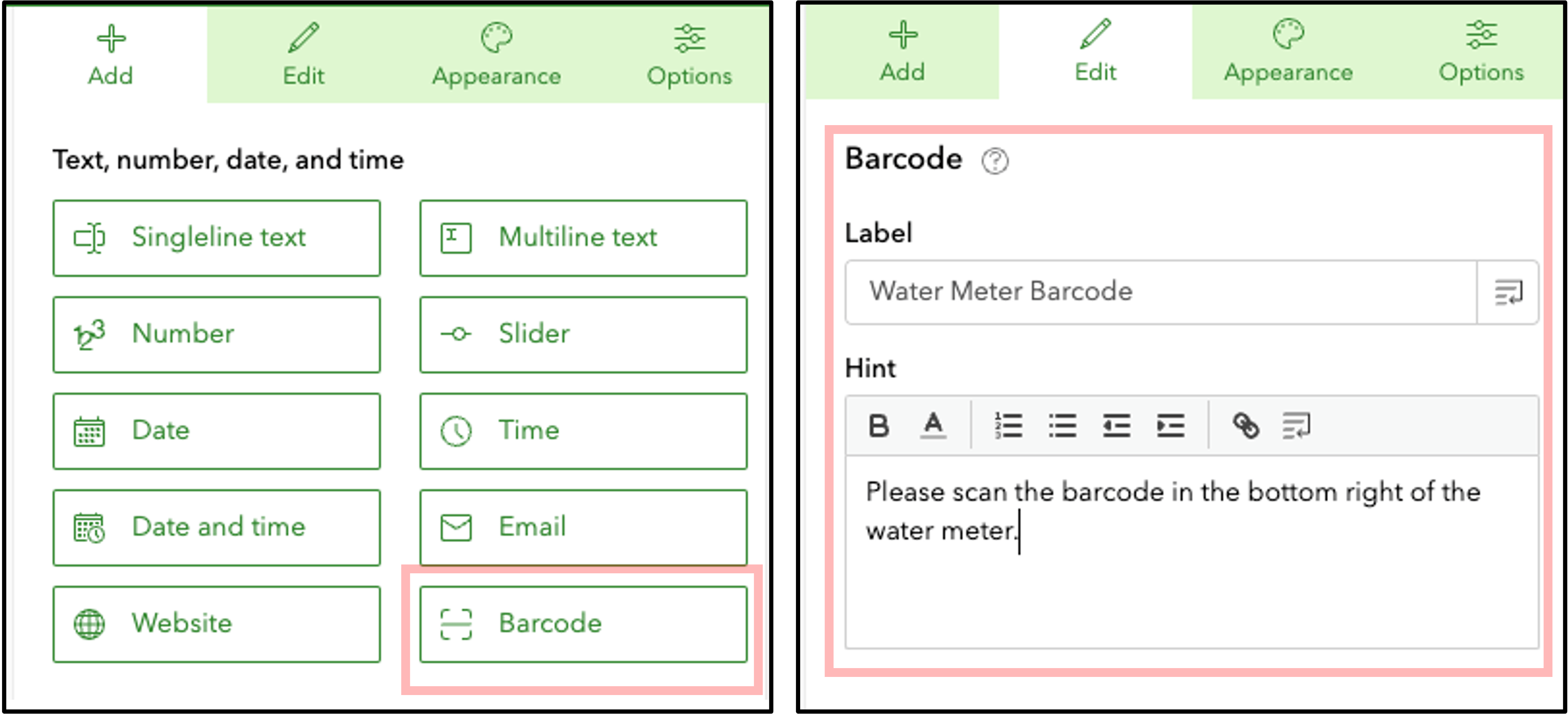 You can use the Survey123 mobile app to scan barcodes using your device’s camera, no need for external barcode hardware. By simply scanning a barcode you can quickly capture the unique identifier and other asset information into your form. This helps to reduce errors and speeds up data capture. The Barcode question type is now available in the Survey123 web designer, which was previously only accessible through Survey123 Connect.