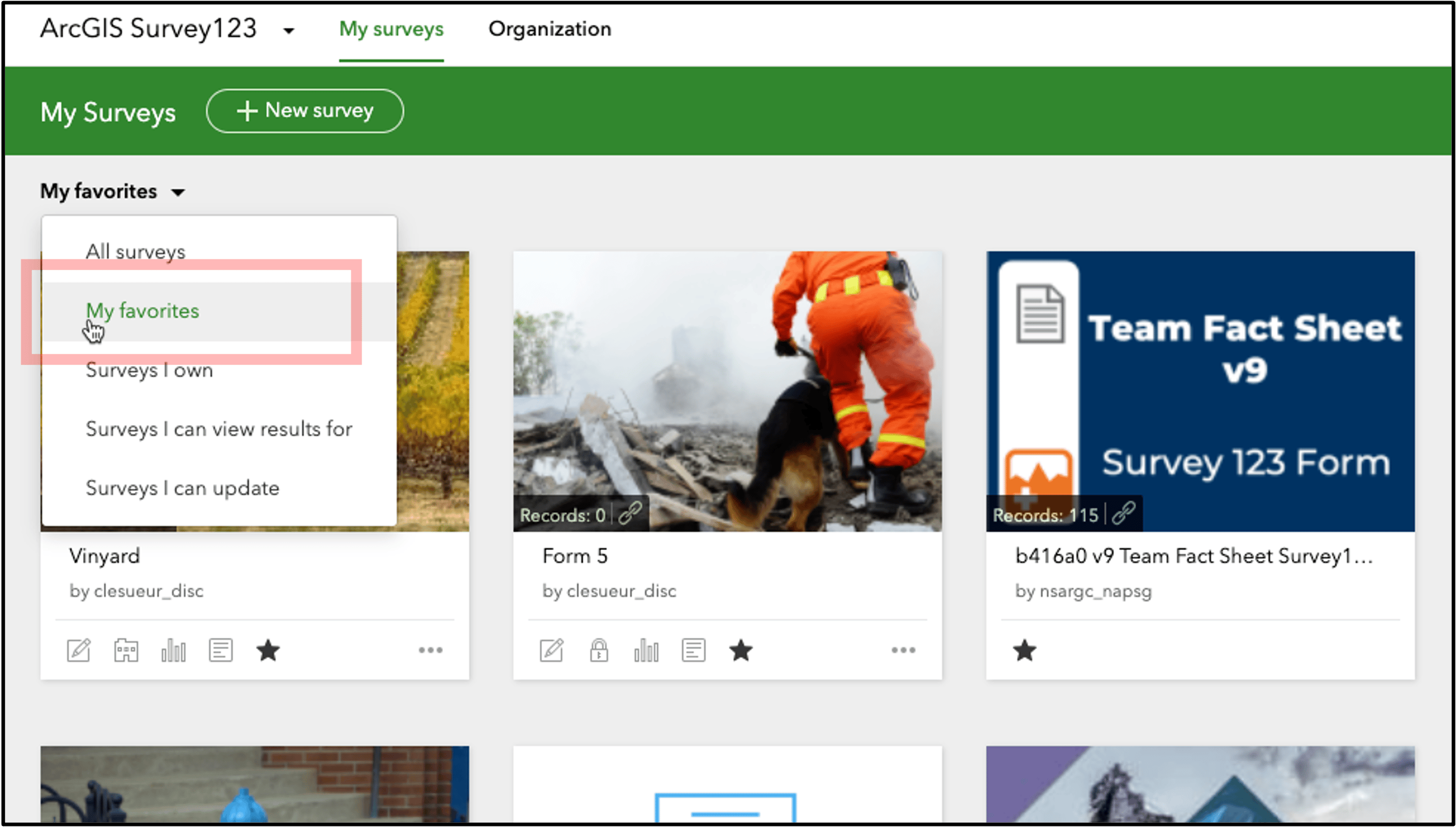 Organize your surveys with the My Favorites page