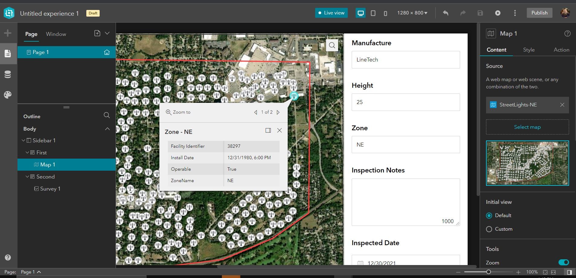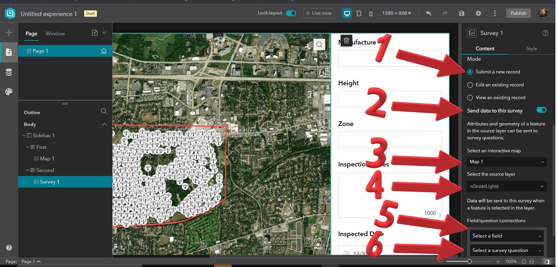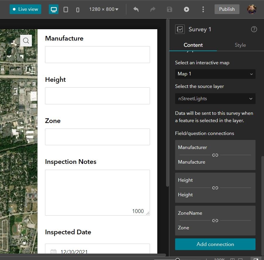 In this case, I am going to select a street light inventory and create a simple Survey123 that will auto-populate with information about the street light and also allow me to submit additional information.