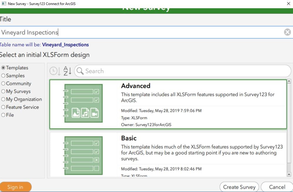 We have highlighted Survey123 in a viticulture context and highlighted some resources for creating your first survey. You can now incorporate this into your own workflows while thinking of new surveys to use in your specific viticulture setting. With an existing feature service in either ArcGIS Online or ArcGIS Enterprise, you can sign in and begin to use Survey123 today.