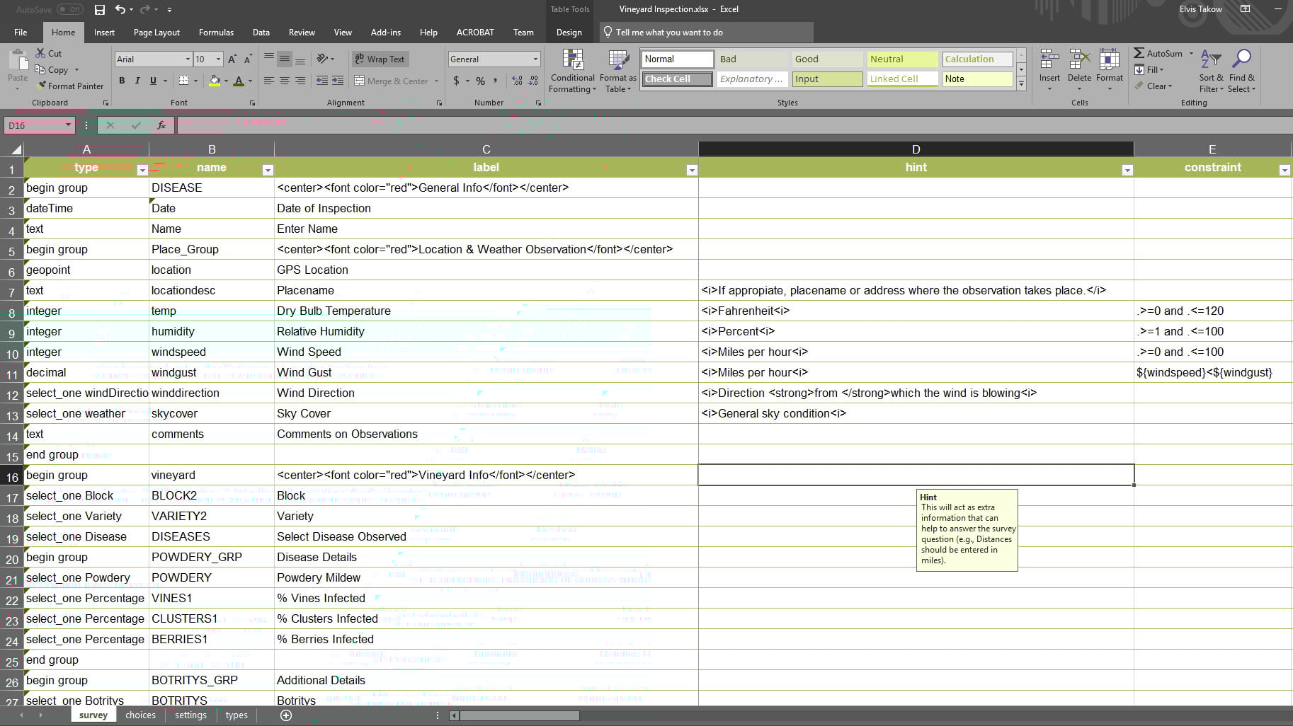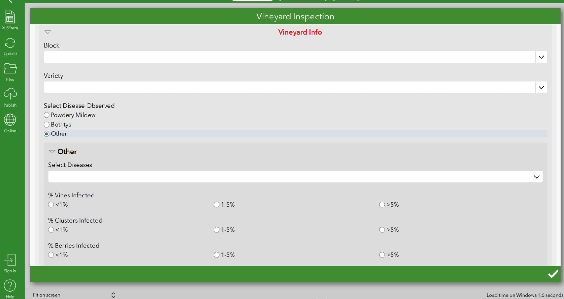 In this example you will see illustrations of a Vineyard Inspection form which was created to inspect vineyard conditions.