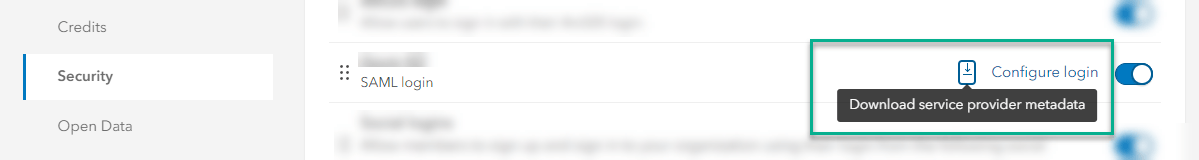 - Upload the updated metadata file downloaded from ArcGIS Online to your SAML Identity Provider. See ArcGIS Online’s Enterprise (SAML) Identity Provider guidance for IDP specific instructions on how to register the service provider metadata XML with your IDP.
