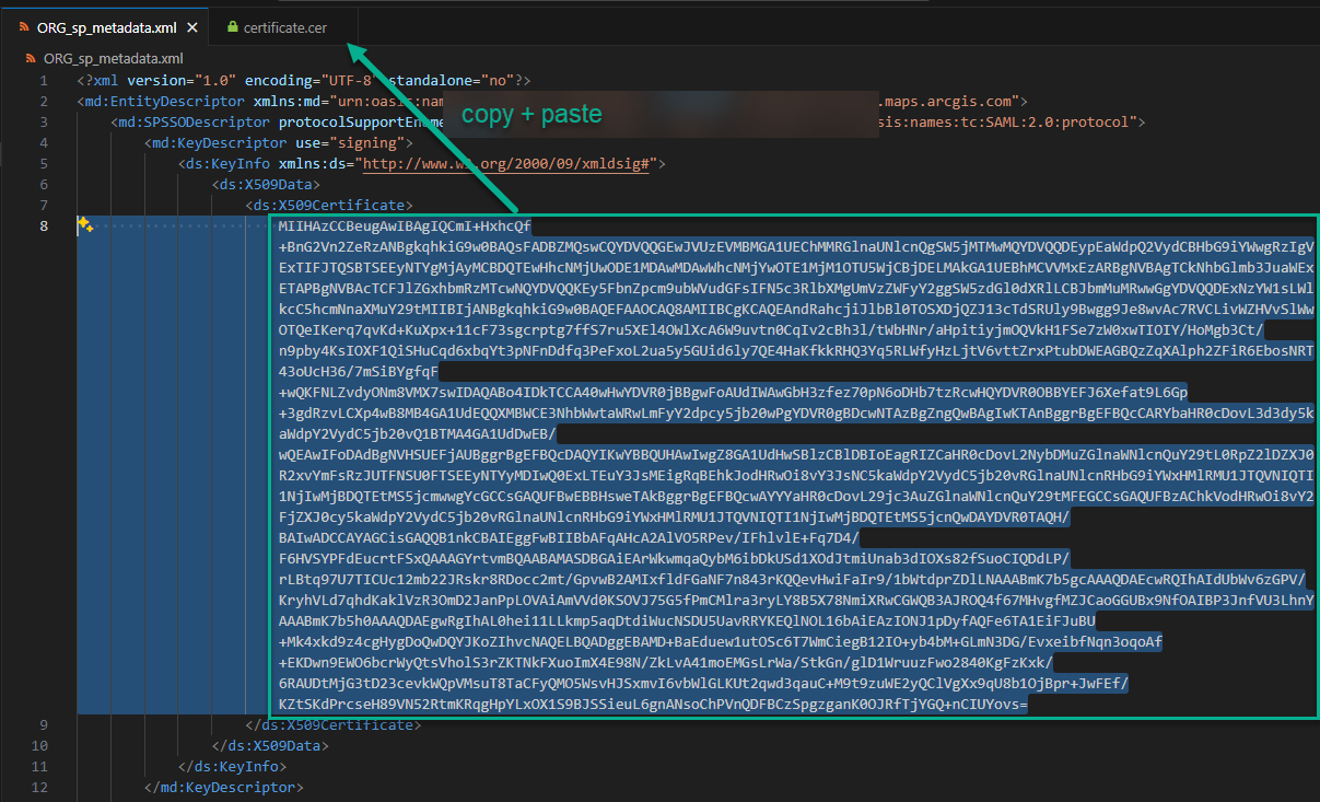 Step 3 – Extract the certificate from the ArcGIS Online metadata file: