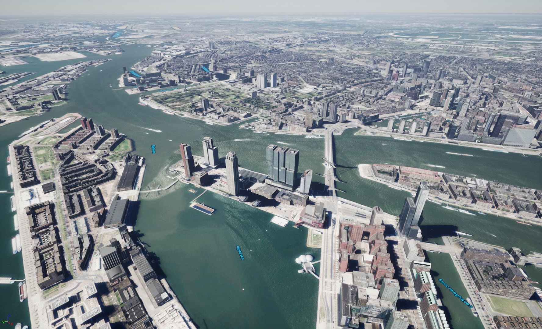 The SDK dynamically streams in the built environment from ArcGIS Online. When the area changes, the client can publish a new scene layer and the application will update itself. In essence, the SDK unifies the world of the GIS with the immersive and beautiful world of game engines.