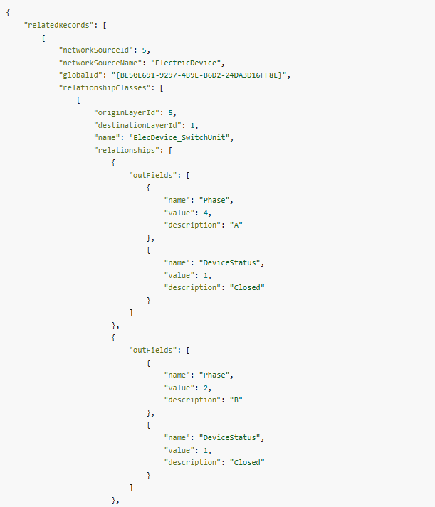 Your GIS data integrates with other datasets which provide context and additional information about your organization’s assets. This information can be beneficial when performing analysis or when exporting data to external systems. With this release, you can now leverage geodatabase relationship classes to include field values from related records in the JSON output for features returned by a trace, or with export of a subnetwork.