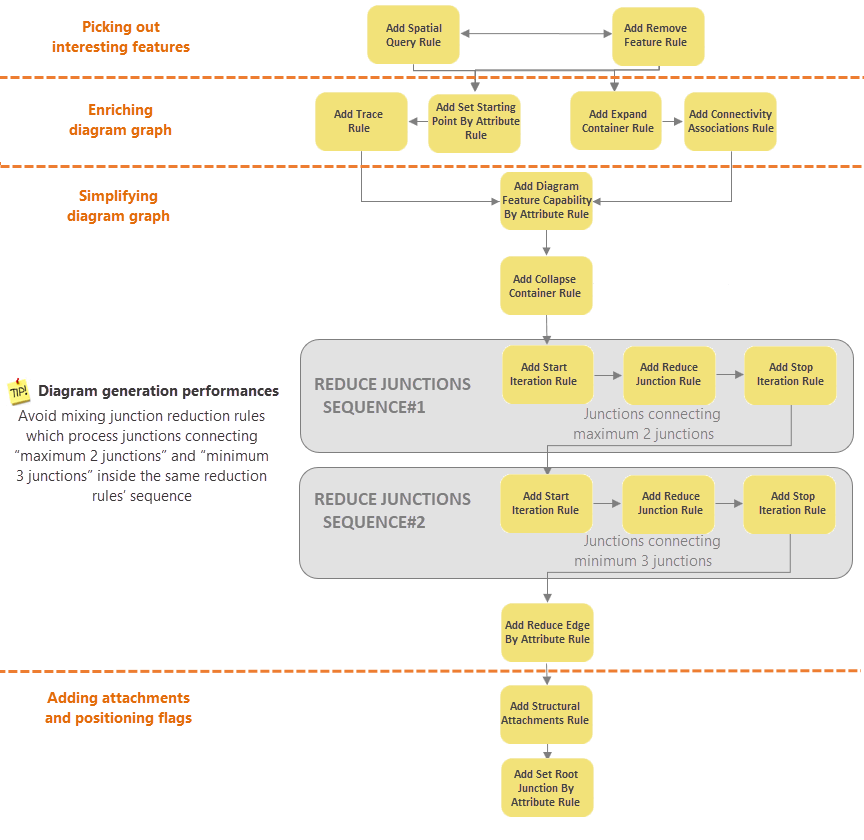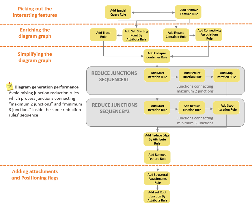- On the other hand, to avoid creation of subnetwork system diagrams that strictly represent features in a subnetwork and don’t provide more value than subnetwork traces, set up subnetwork diagram templates with diagram rules that will simplify the subnetwork representation such as Reduce Junction, Reduce Edge, and Collapse Container rules.