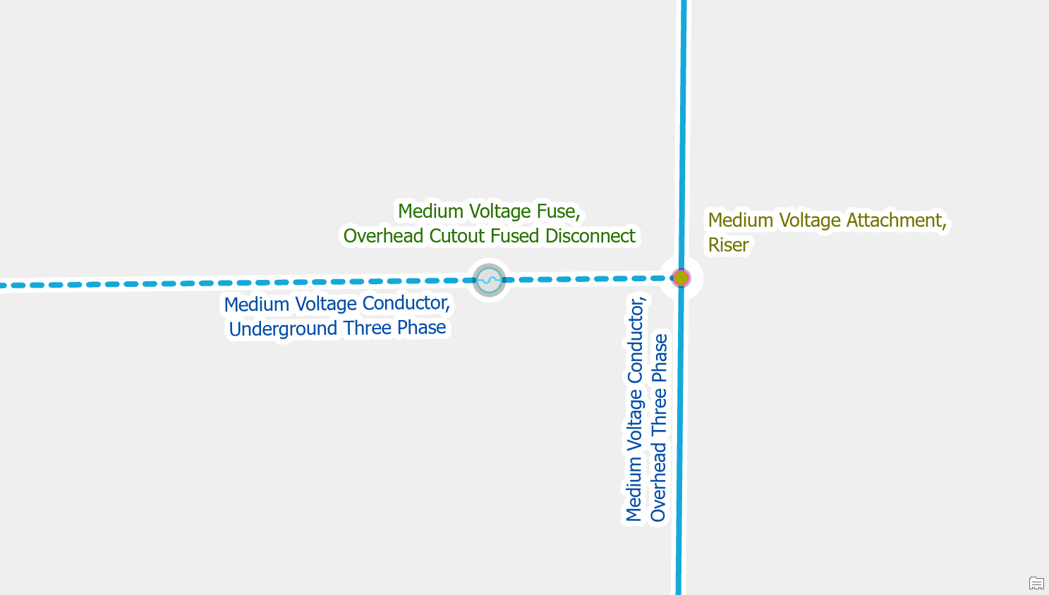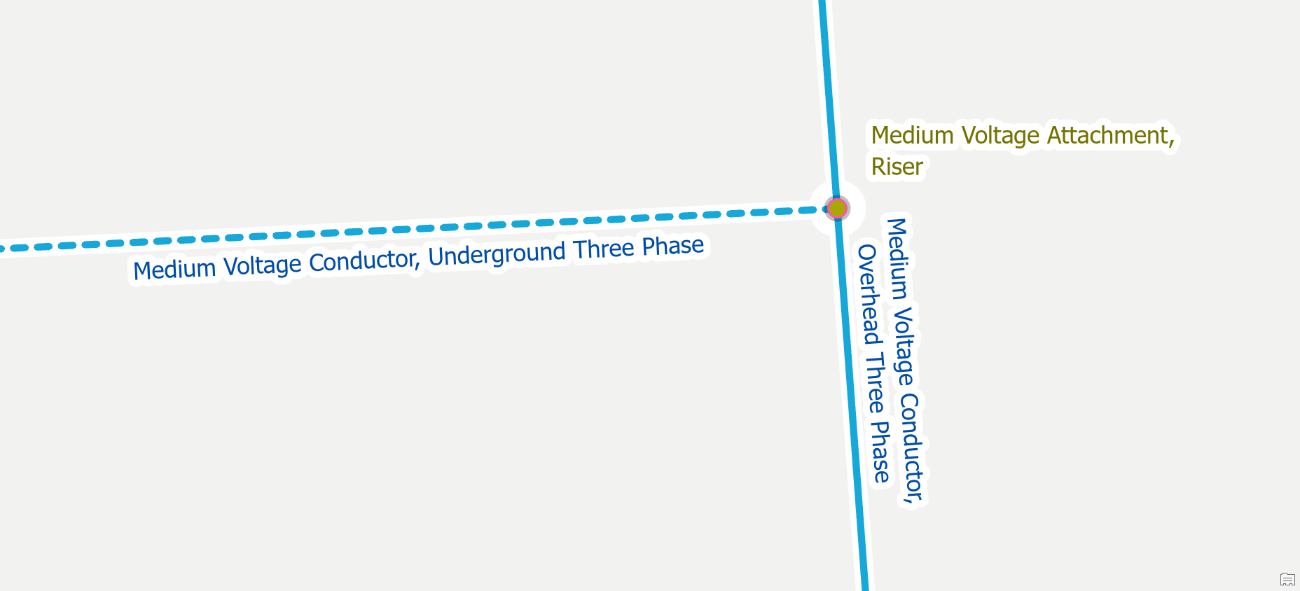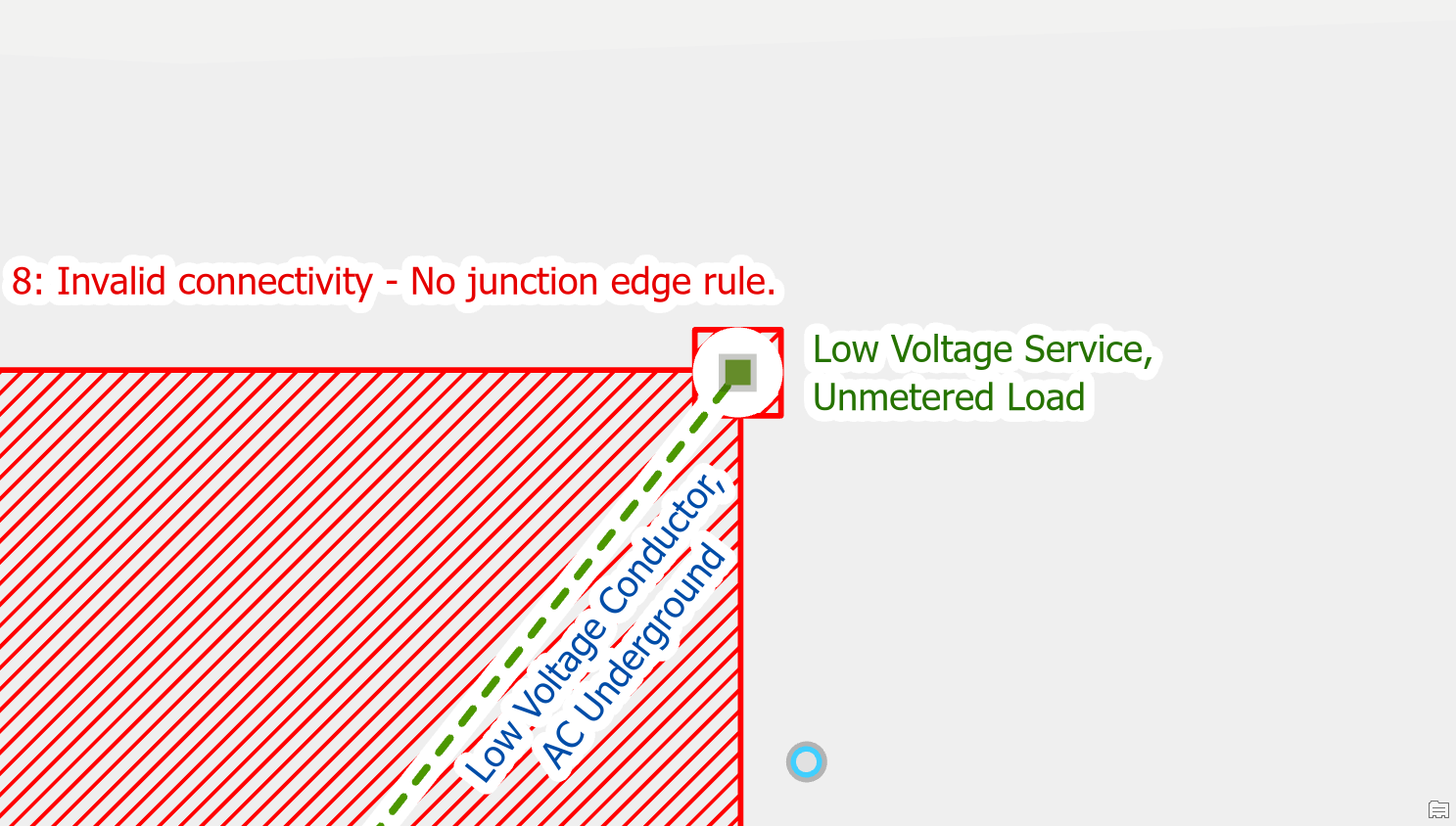 If you have two valid point features that are connected to a line, but the features happen to be stacked on top of each other, you will need to move one of these features. A common example of this is when placing a riser and a fuse on the same pole. To correct the error you will want to move the riser off the pole.