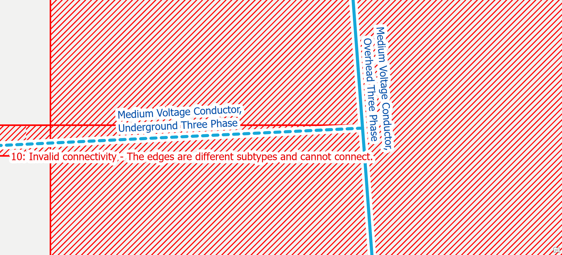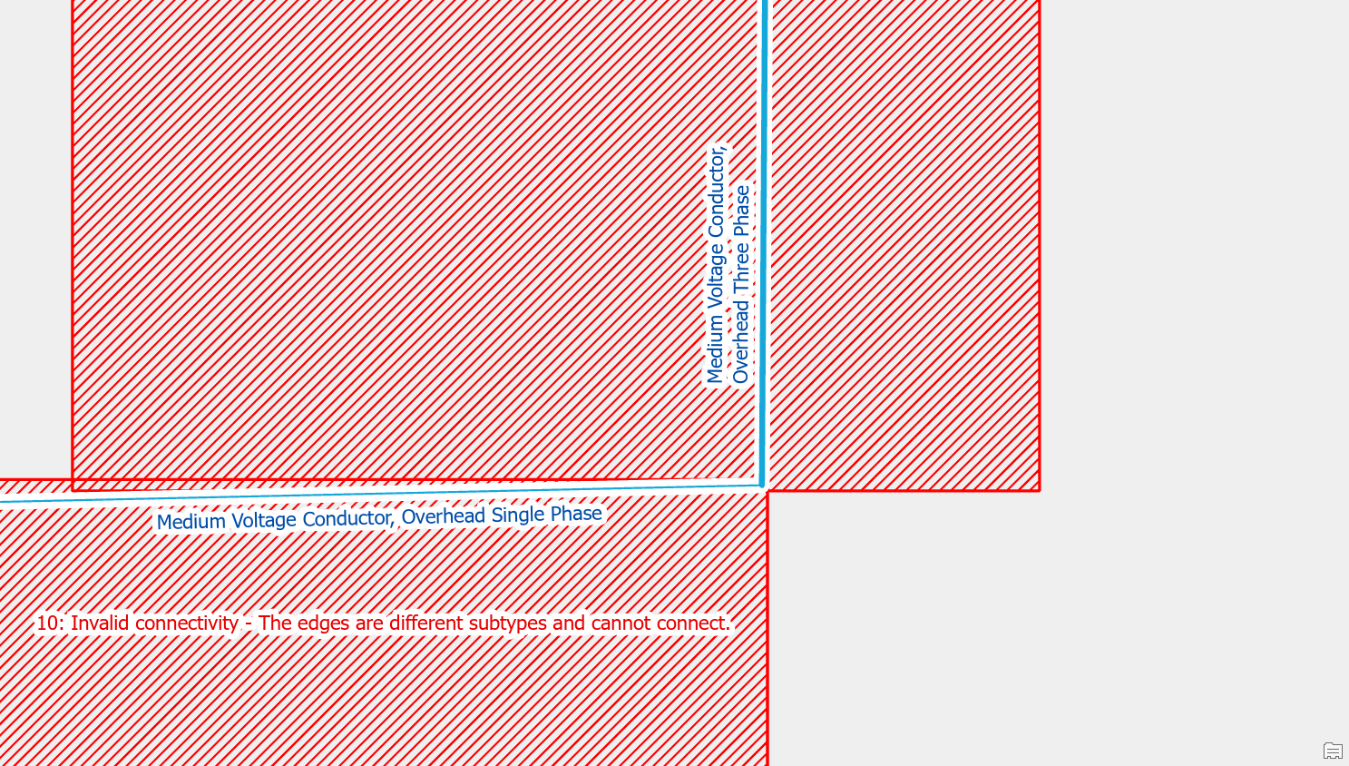 | Edge-Edge Errors | 10: Invalid connectivity – The edges are different subtypes and cannot connect |